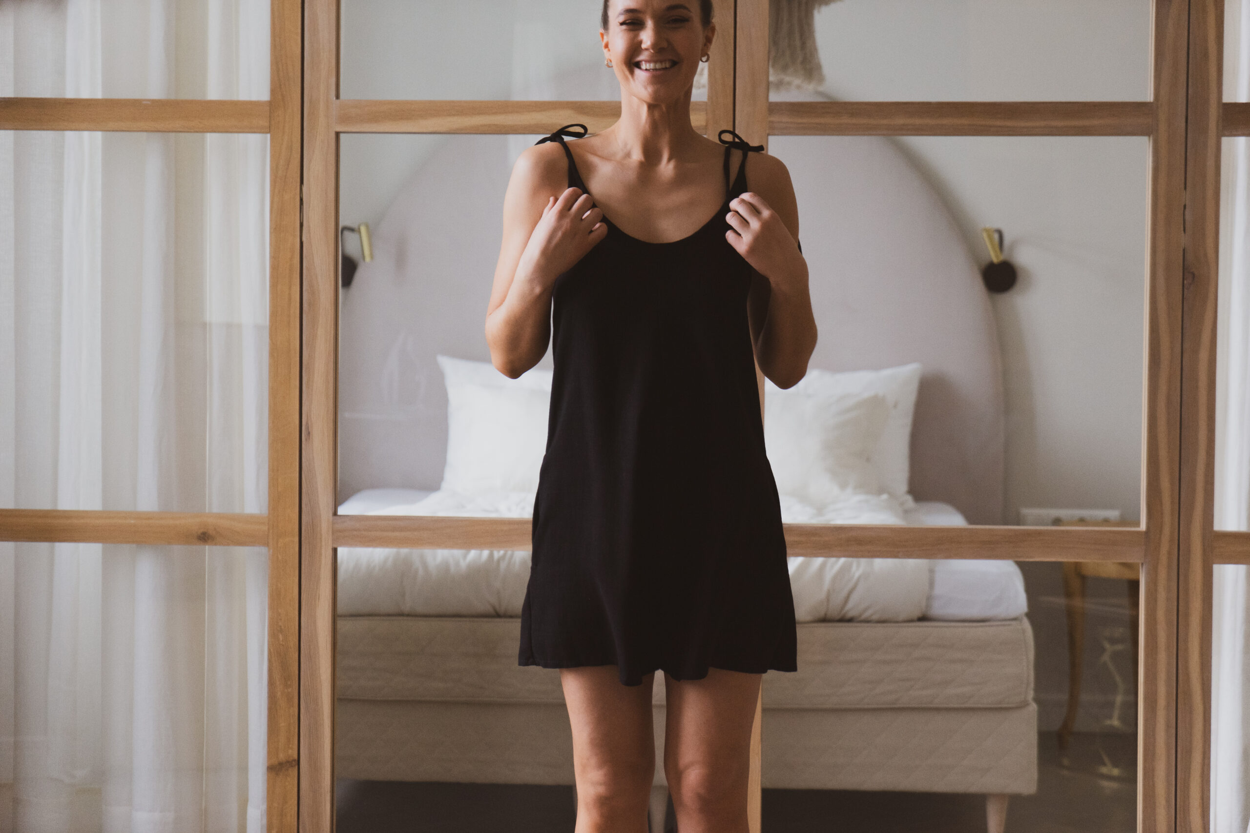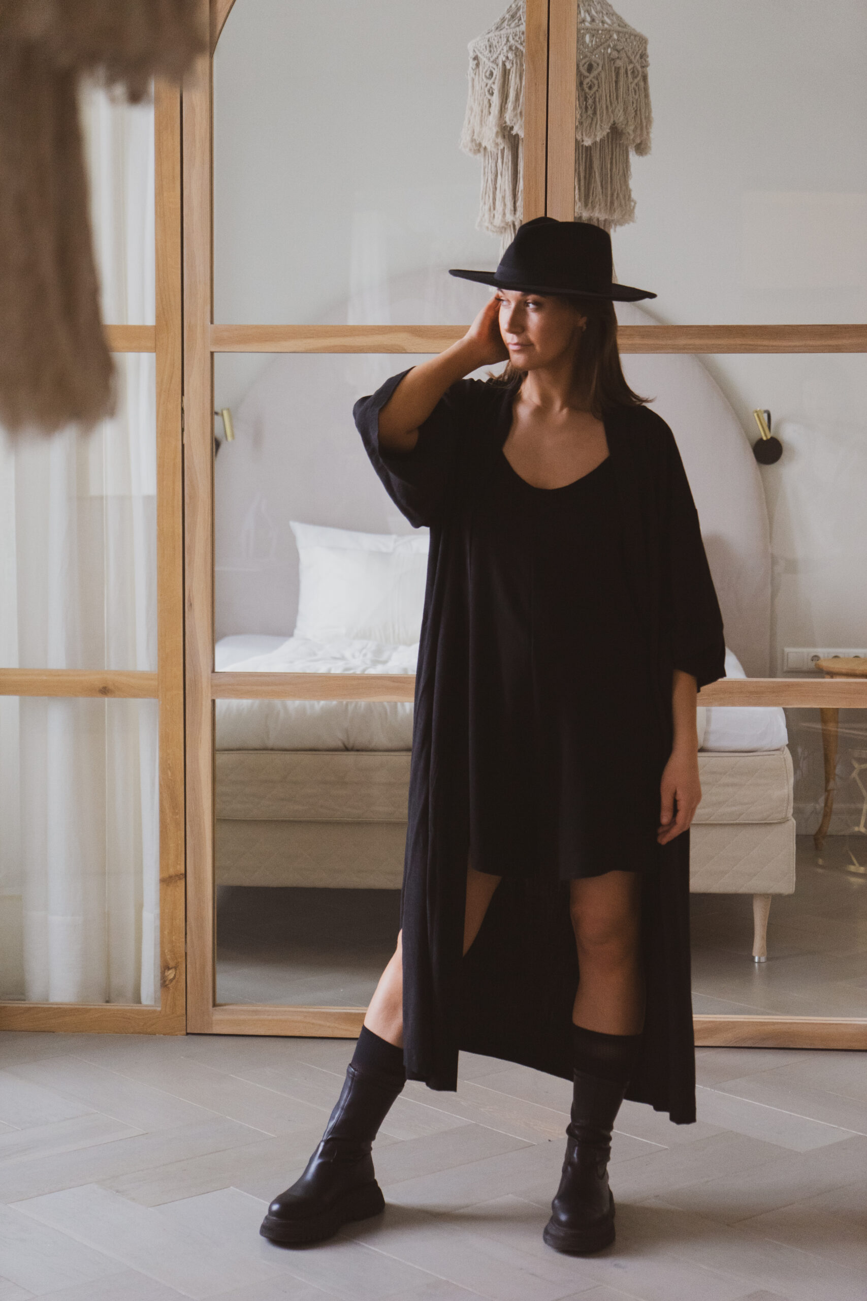 Ami pükstükk on õlalt seotavate paeltega, mõnusalt vabalt selga kukkuv, taskutega ja laia sääreosaga pükstükk. Just tänu õlapaeltele saab iga naine ise pükstüki endale selga nö parajaks sättida, nii et see istuks sinu seljas just täpselt nii nagu sinule meeldib. Pükstükk sobib kandmiseks nii pluusi peal kui nt bikiinide peal või pesuga või miks mitte ka lihtsalt niisama, et midagi all ei ole. Suviselt vaba ja mõnus riideese ilma milleta suviseid kulgemisi ette ei kujutagi. Modell on 172 cm pikk ja S/M suuruse kandja ning kannab pildil S suuruses pükstükki.