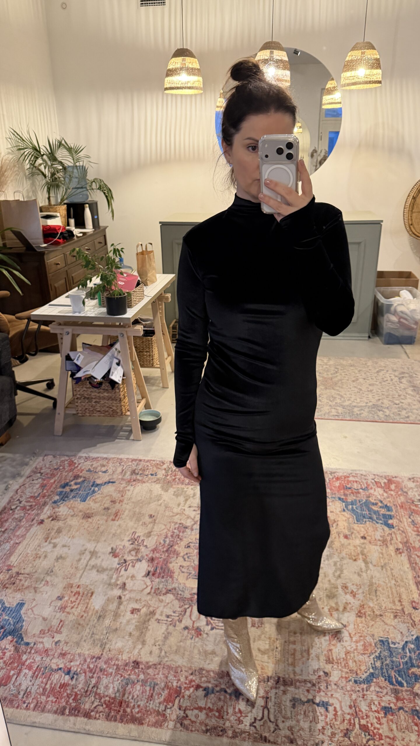 Gia on väga elegantne ja pidulik, taljet rõhutava lõikega kleit, millel veidi kõrgem kaelus ja taga avar lõhik. Kleidile lisavad iseloomu eriti pikad ja elegentsed pöidla avaga varrukad.  Gia kleit on tehtud kvaliteetsest hästi langevast sametkangast, kangas ei vaja triikimist.