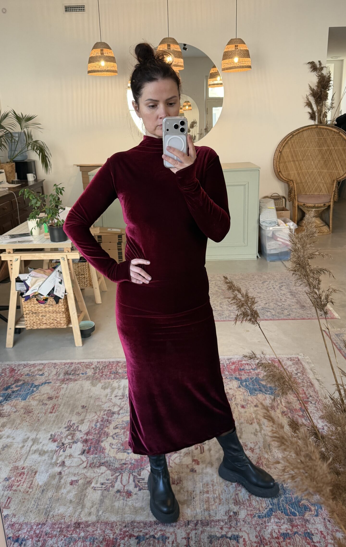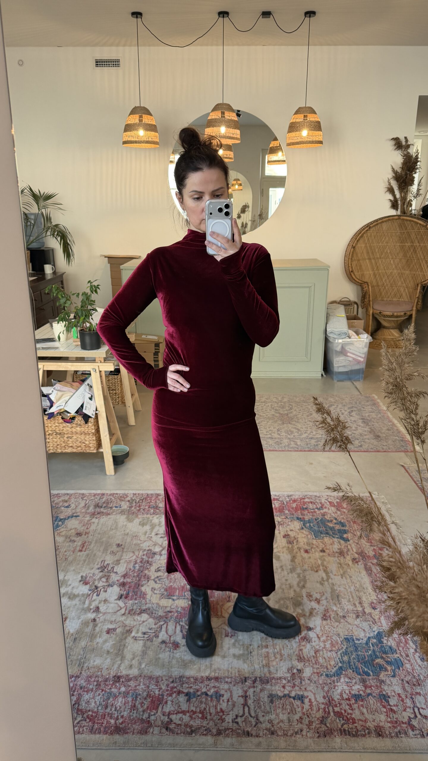 Gia on väga elegantne ja pidulik, taljet rõhutava lõikega kleit, millel veidi kõrgem kaelus ja taga avar lõhik. Kleidile lisavad iseloomu eriti pikad ja elegentsed pöidla avaga varrukad. Gia kleit on tehtud kvaliteetsest hästi langevast sametkangast, kangas ei vaja triikimist.