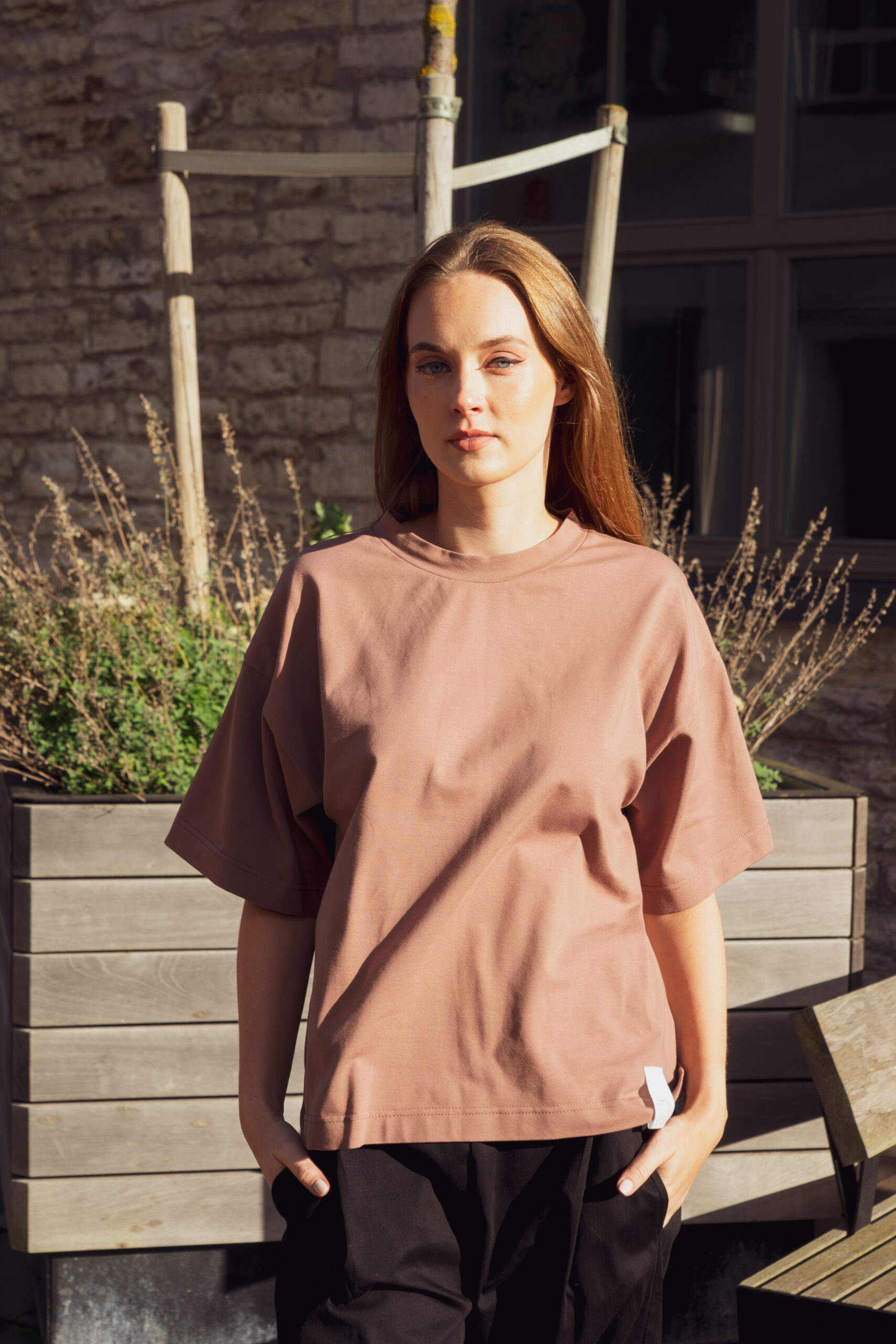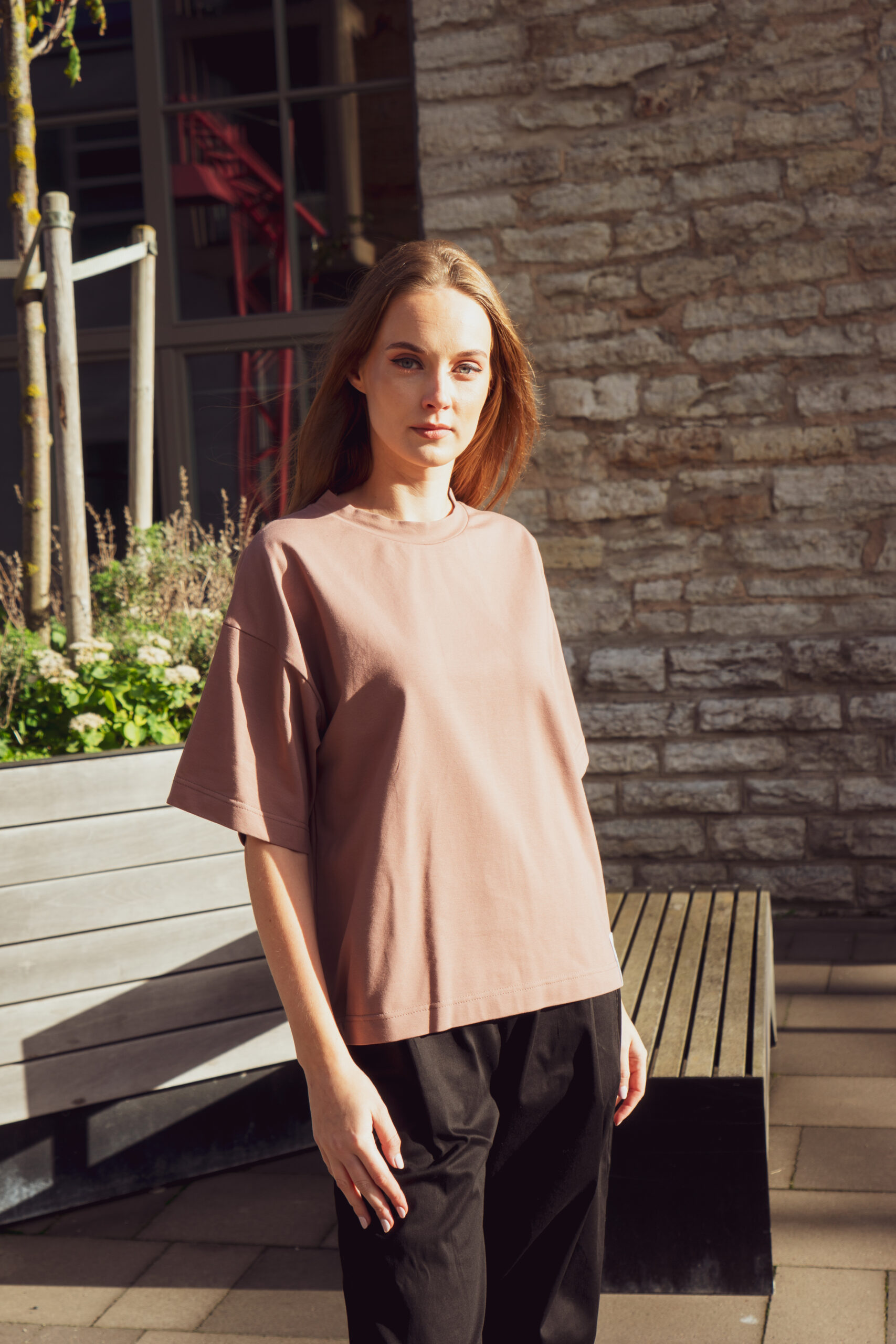 Line on minimalistliku lõikega oversize mõõdus avarate varrukatega t-särk mis valmistatud öko-tex märgistusega trikotaazkangast.
