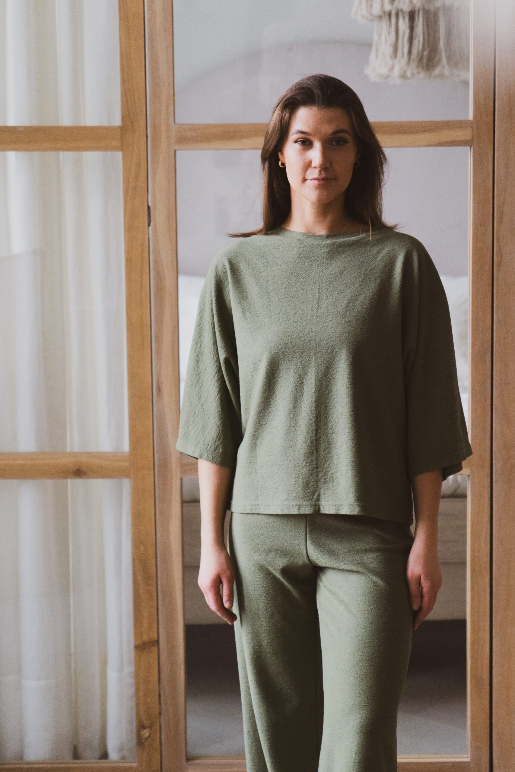 Mena lühike t-särk on mõnusalt avar, oversize mõõdus, avarate kolmveerand varrukatega t-särk. Mena lühike t-särk on valmistatud eriliselt pehmest, mõnusast ja kergelt struktuursest kangast. Mena t-särk on osa Mena Loungewear-ist, mida saab kombineerida Mena pükstega.