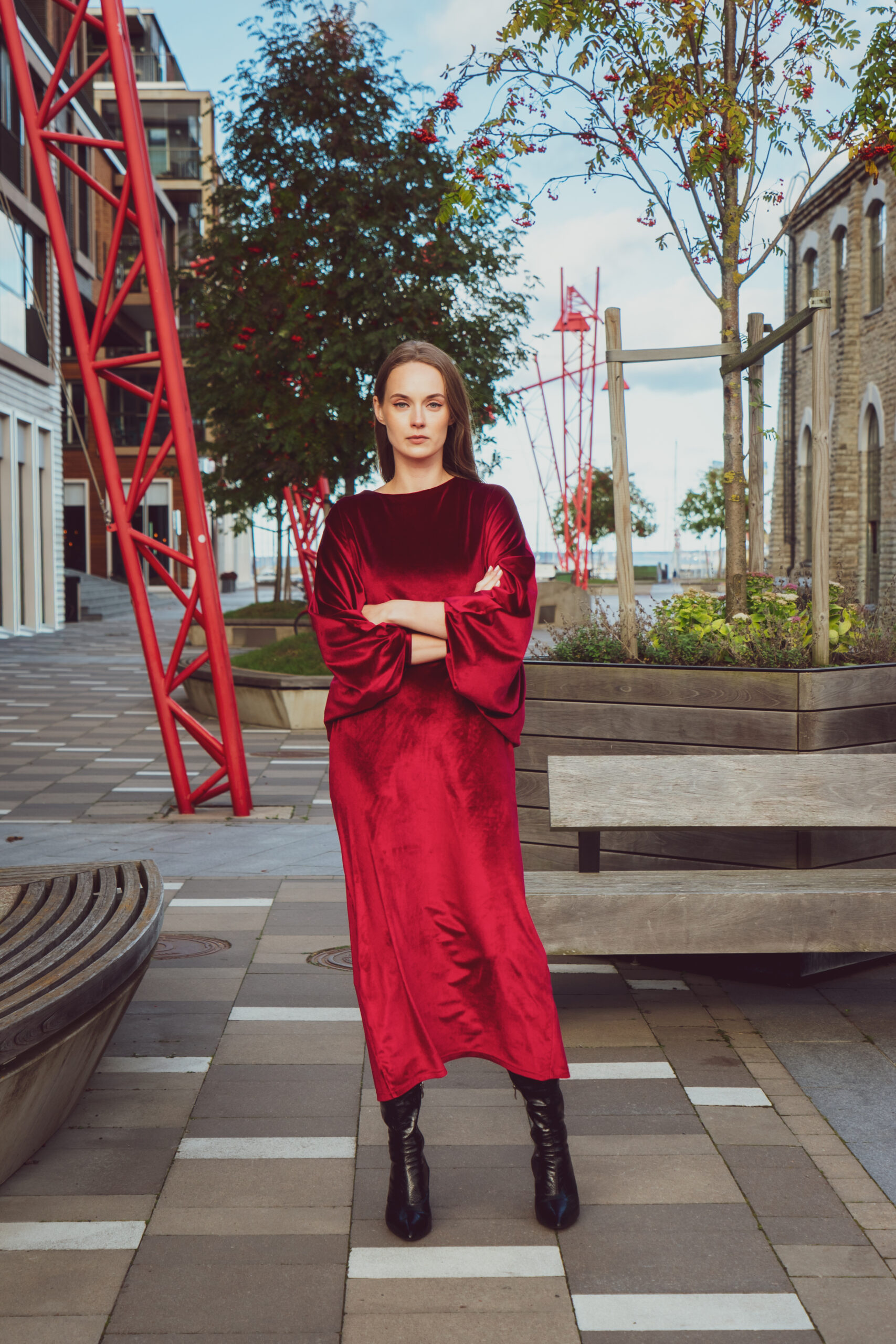 Sametist Sion on minimalistliku lõike ent suurte nö nahkhiire varrukatega kleit, millel taga avar lõhik ja üleval krae ääres nööpkinnitus. Maagiline sametkangas langeb ja liigub sinu seljas salapäraselt, jättes vajadusel varju need paar ajutist lisakilo ja tuues välja sinu parimad küljed. Kleiti selga pannes tõmba varruka ots kindlasti käsivarrel veidi üles, nii jääb kleit seljas just nii nagu piltidel. Sametist Sion kleit ei ole kortsuv.